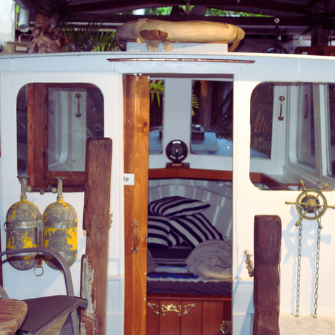 Set in a tropical paradise garden, this home showcases unique nautical memorabilia and handcrafted furniture. You would be forgiven for thinking you were entering a miniature marine museum; there are many interesting nautical pieces to investigate.